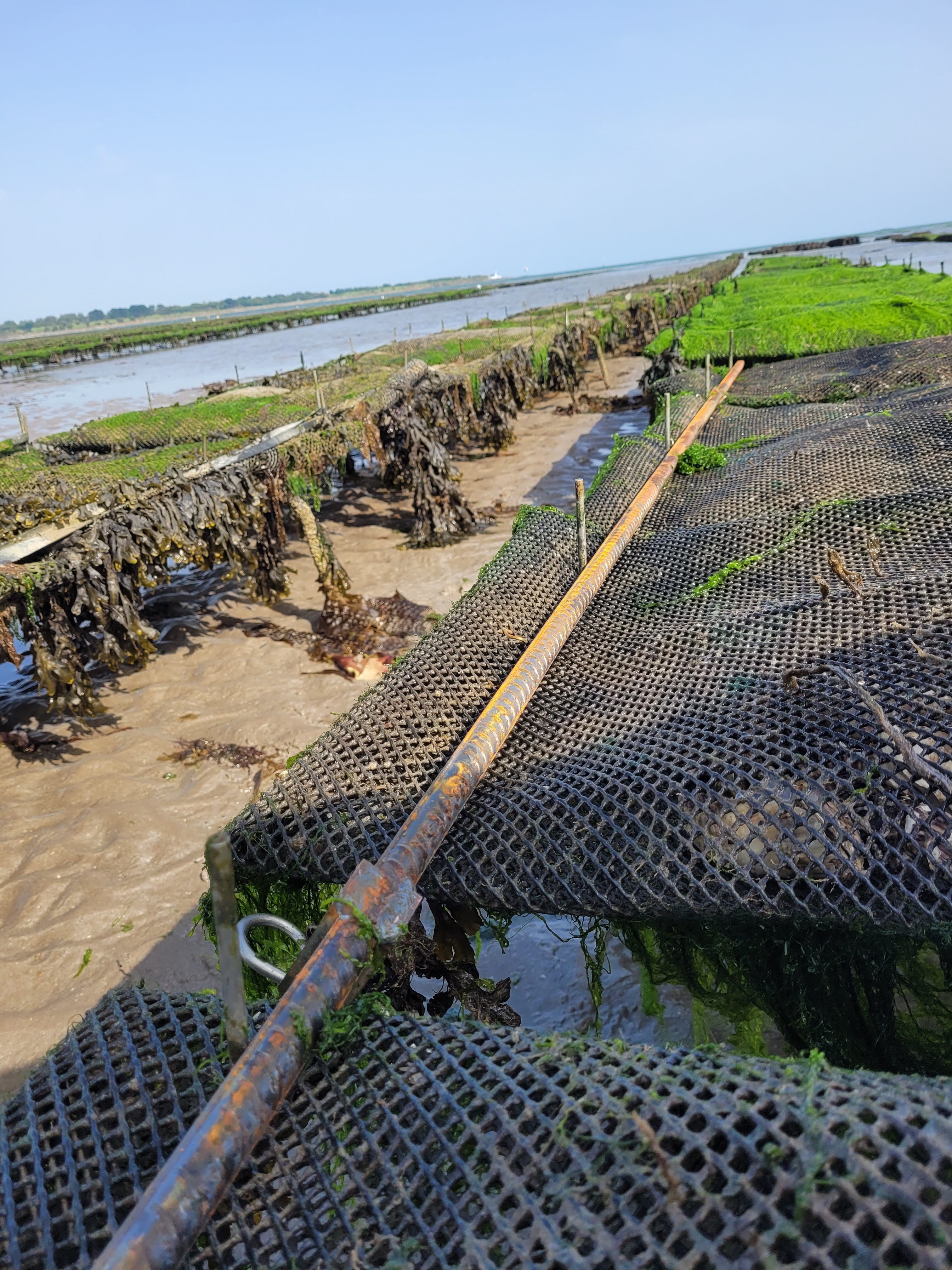 Bags are not clamped down, this gives more room in the bags and allows wind and wave action to move oysters
